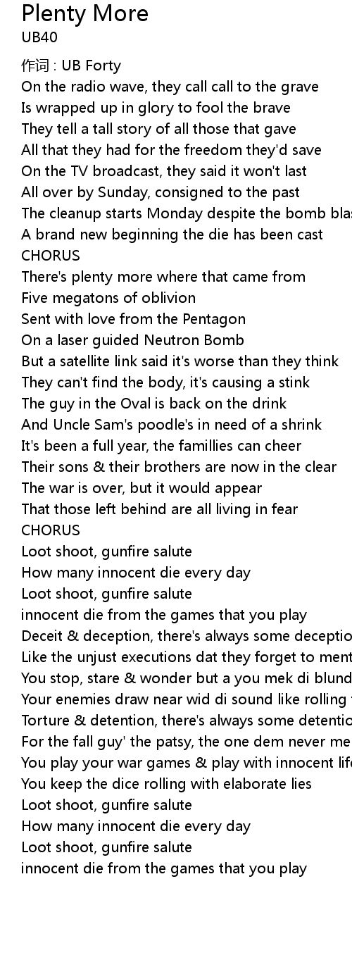 | 歌曲 | Plenty More |