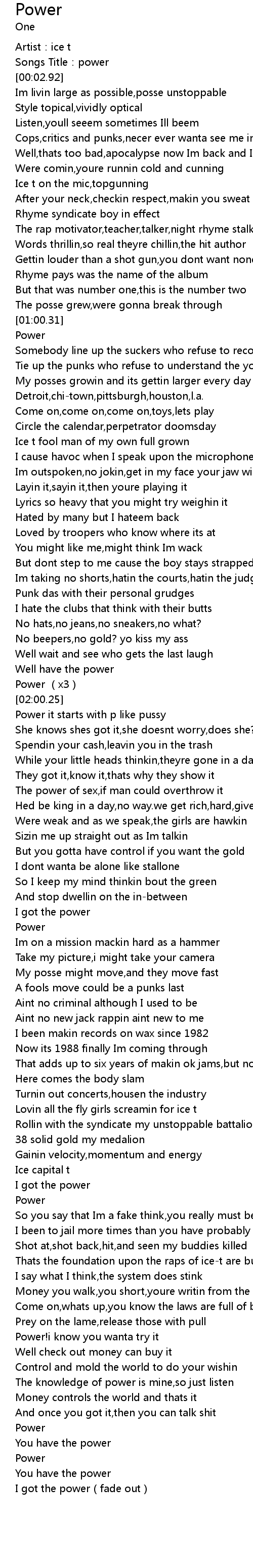 | [03:25.71] | Power |