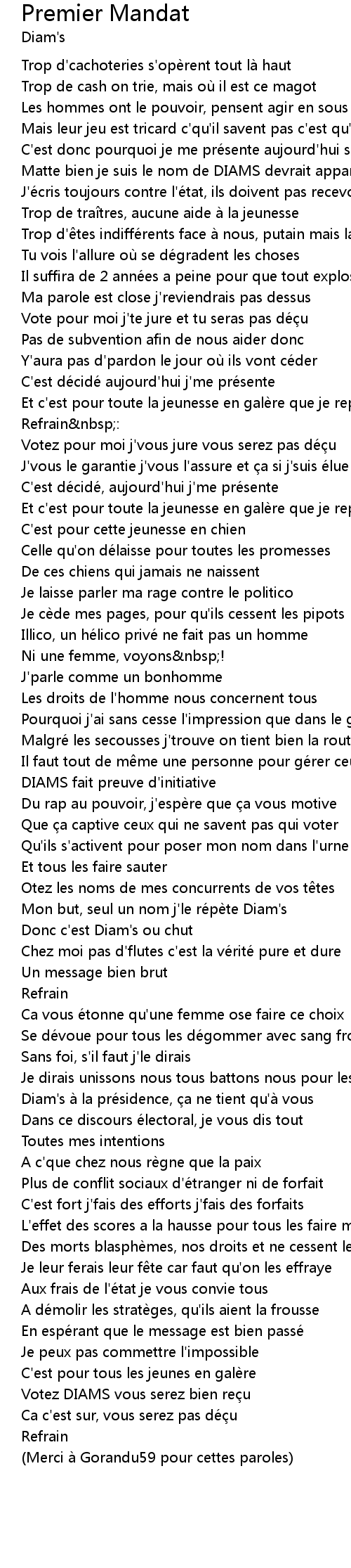 | Mon but, seul un nom j' le ré pè te Diam' s | |