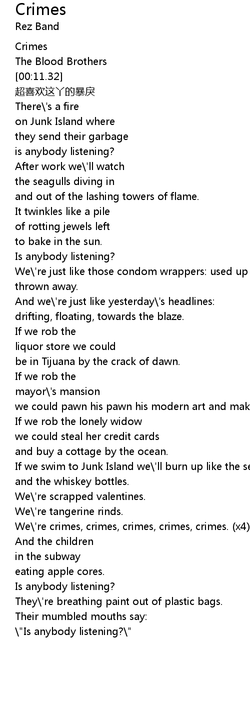 | [02:21.11] | We\'re crimes, crimes, crimes, crimes, crimes. (x4) |