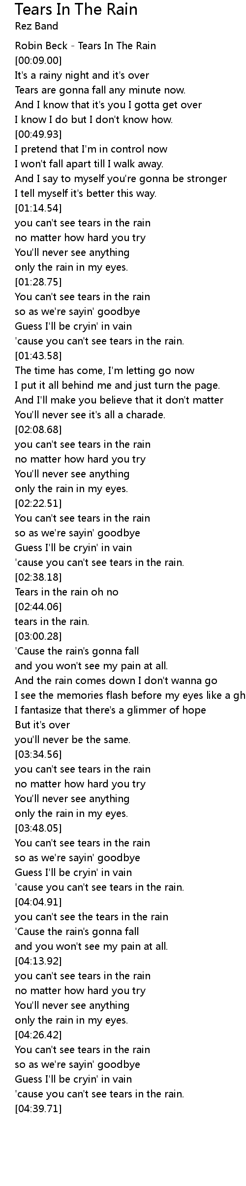 | [04:36.70] | 'cause you can't see tears in the rain. |