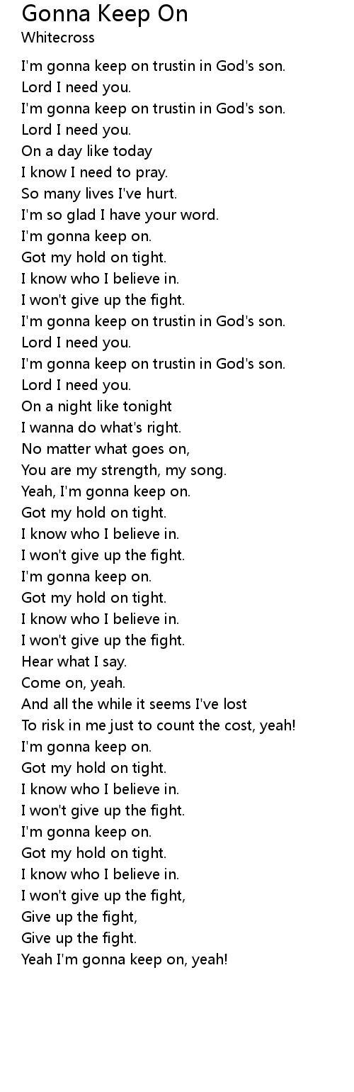 Yeah I'm gonna keep on, yeah! |