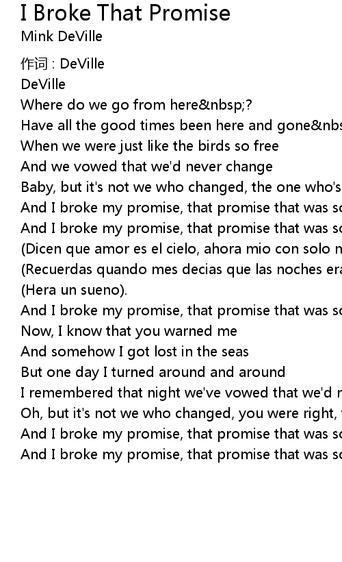 | 歌曲 | I Broke That Promise |