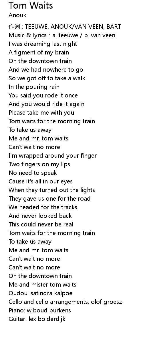 | 作词 : TEEUWE, ANOUK/VAN VEEN, BART | |