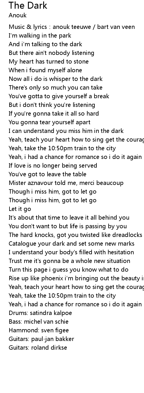 | Music lyrics: anouk teeuwe bart van veen | |