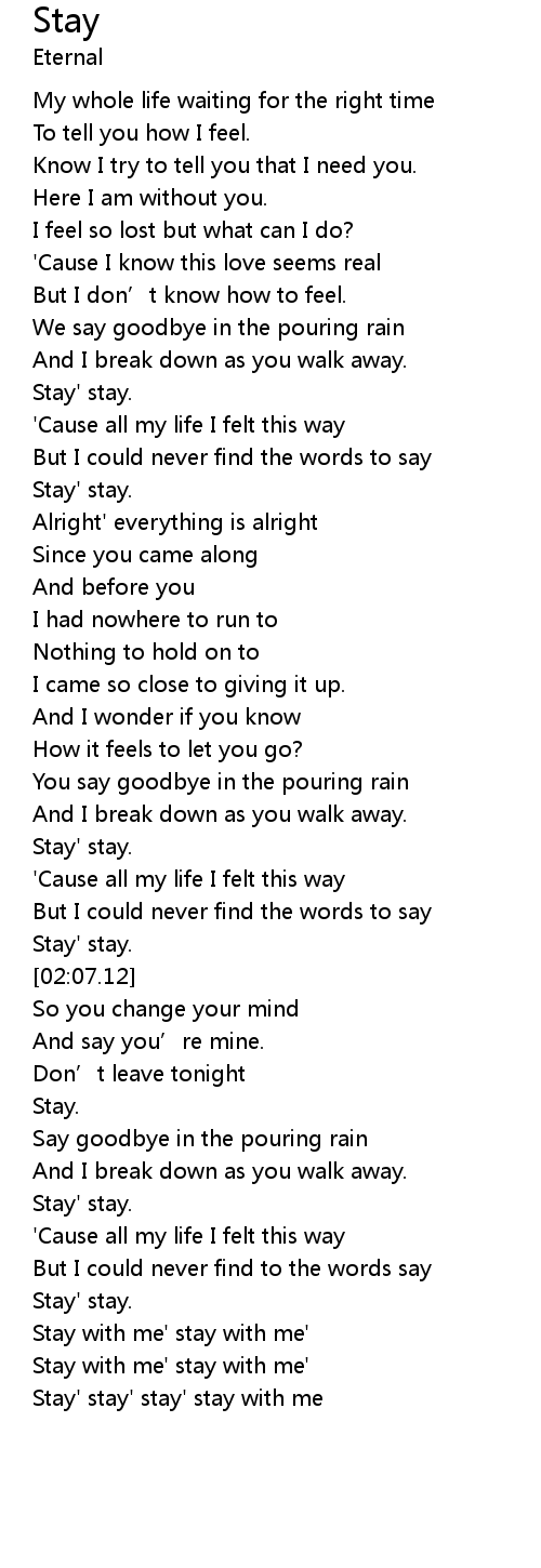 | [03:19.66] | Stay' stay' stay' stay with me |