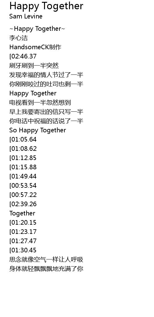 | [02:42.65][02:39.26][02:35.69][02:32.03][02:02.80][01:59.43][01:01.08] | I' m Happy Together |