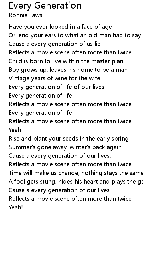Cause a every generation of our lives, |