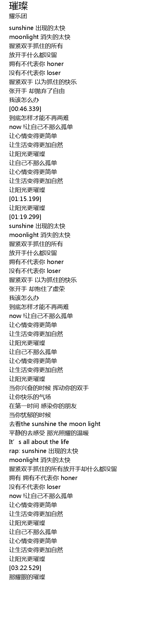 | [02:49.680] | rap: sunshine chū xiàn de tài kuài |