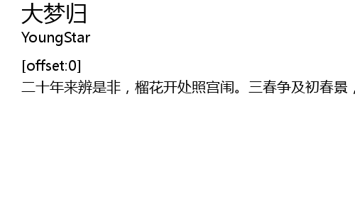 | [00:30.140] | 二十年来辨是非,榴花开处照宫闱。三春争及初春景,虎兕相逢大梦归。二十年来辨是非,榴花开处照宫闱。三春争及初春景,虎兕相逢大梦归。二十年来辨是非,榴花开处照宫闱。三春争及初春景,虎兕相逢大梦归。 |