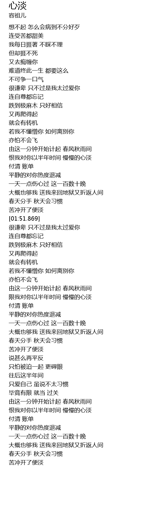 | 歌曲 | 心淡 |