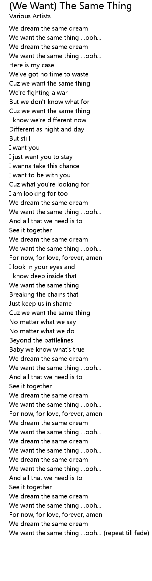We want the same thing ...ooh... (repeat till fade) |