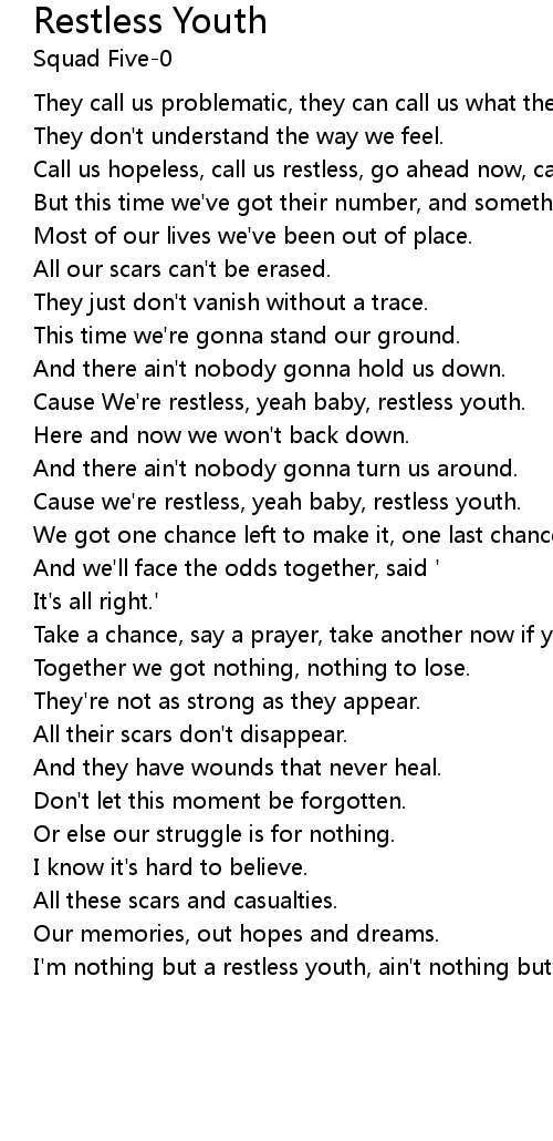 Cause we're restless, yeah baby, restless youth. |