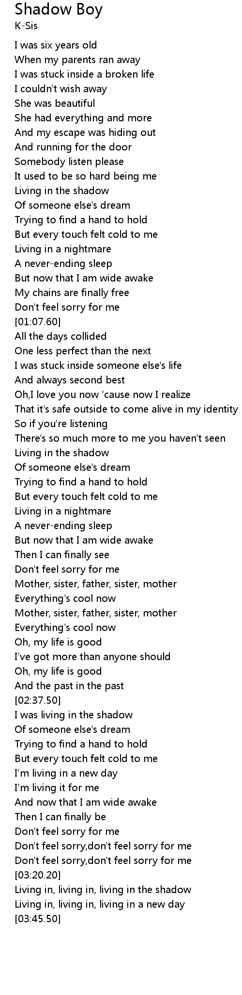 | [02:39.90] | I was living in the shadow |