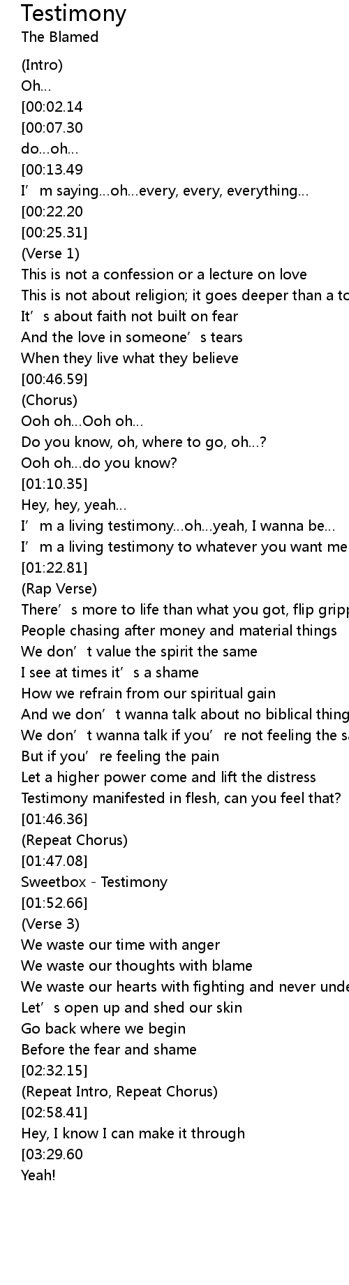 | 歌曲 | Testimony |