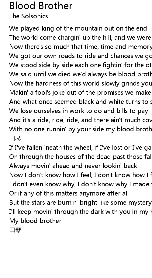 | [00:49.16] | We said until we died we' d always be blood brothers |