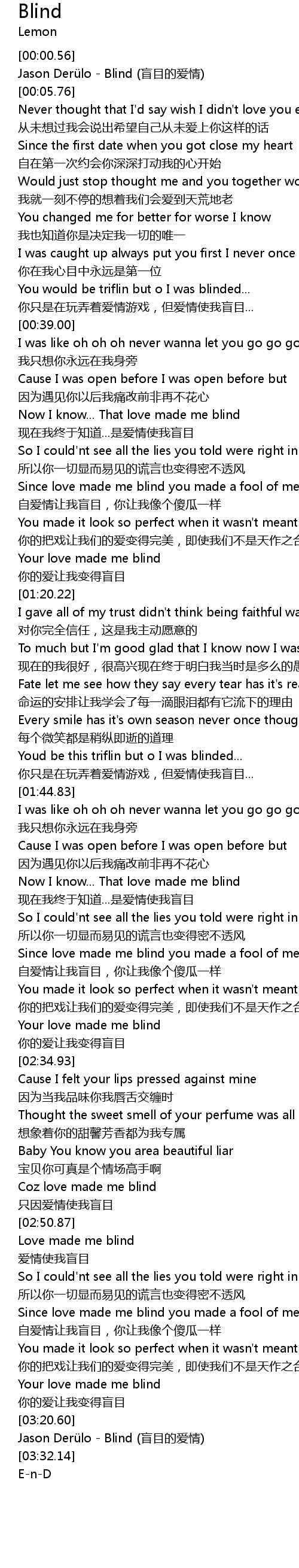 | [00:02.61] | Jason Derülo - Blind (盲目的爱情) |