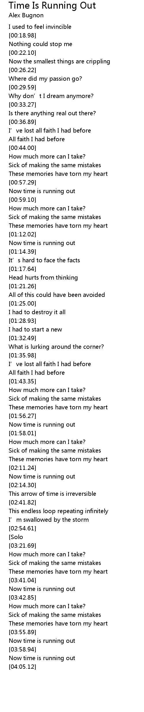 | [03:56.14] | Now time is running out |