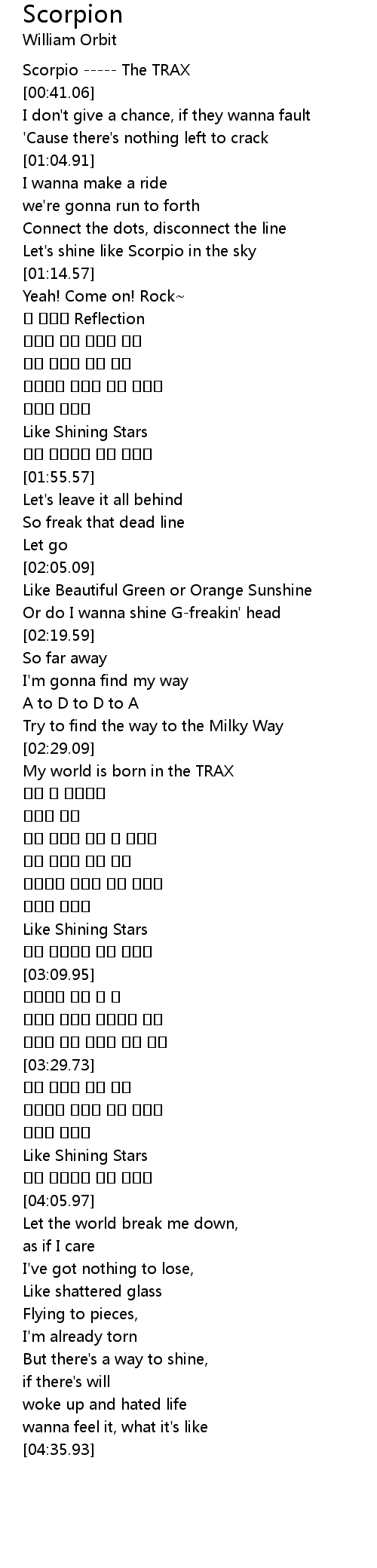 | [01:12.03] | Let's shine like Scorpio in the sky |
