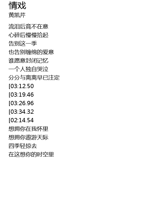 | [04:03.60][03:34.32][02:09.08][01:39.65] | rén yī qù ài suí fēng qù |