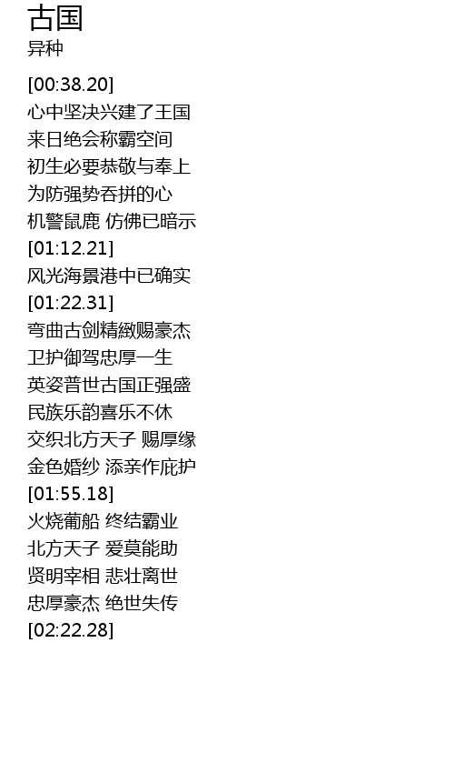 | [01:45.12] | 交织北方天子 赐厚缘 |