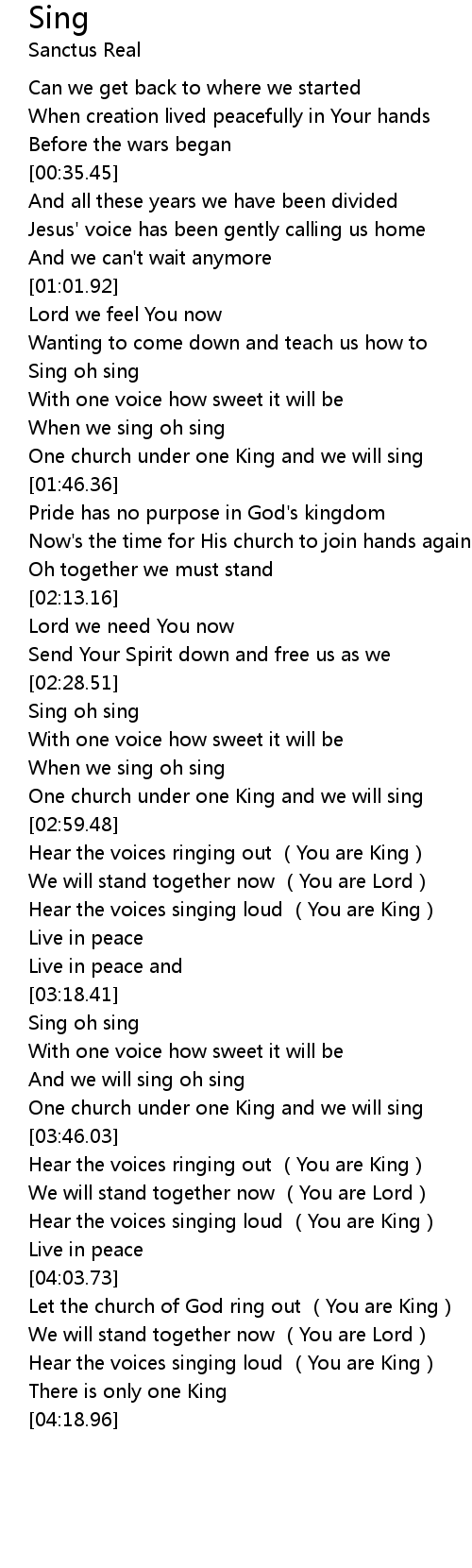 | [04:12.13] | Hear the voices singing loud (You are King) |