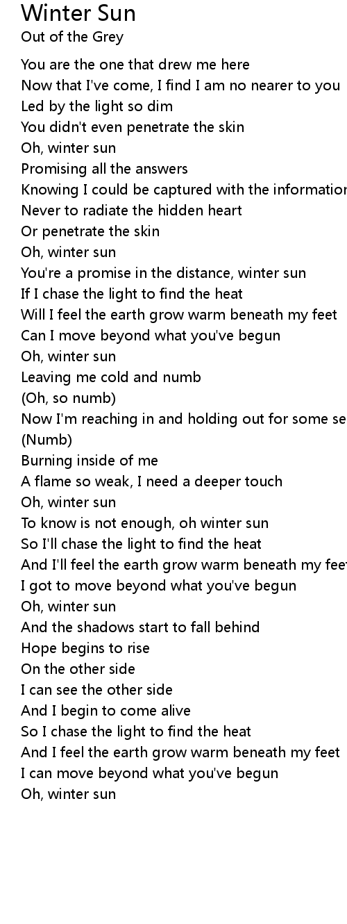 To know is not enough, oh winter sun |