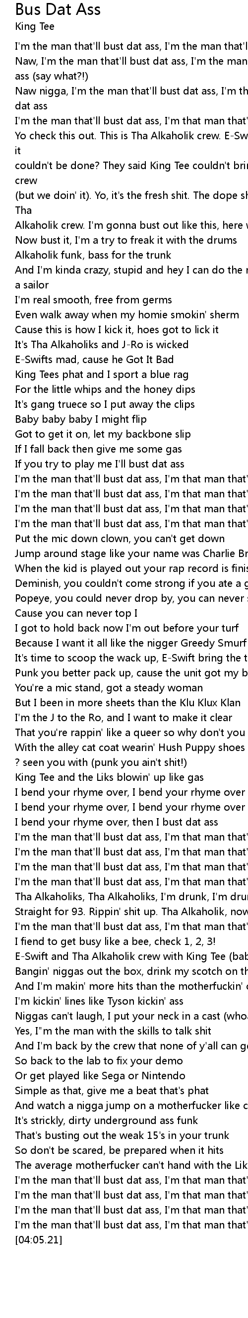 [01:19.59] I'm the man that'll bust dat ass, I'm that man that'll bust dat ass