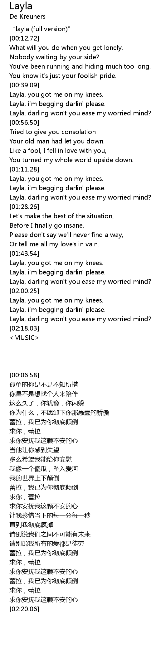 | [00:49.16] | Layla, darling won't you ease my worried mind? |