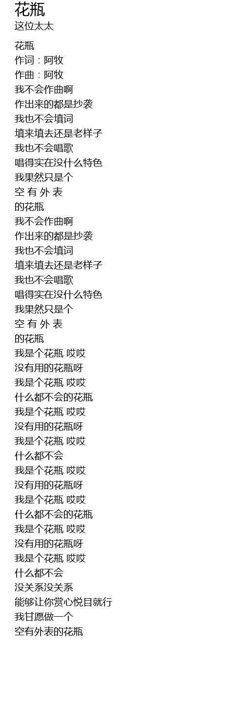 | [03:56.69] | wǒ shì gè huā píng āi āi |