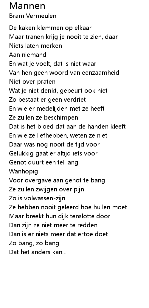 Maar tranen krijg je nooit te zien, daar |