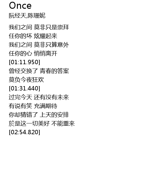 | [02:30.540] | 你却猜错了 上天的安排 |