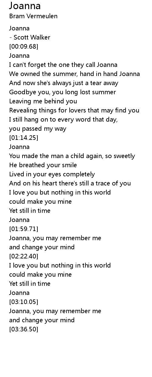 I can't forget the one they call Joanna |