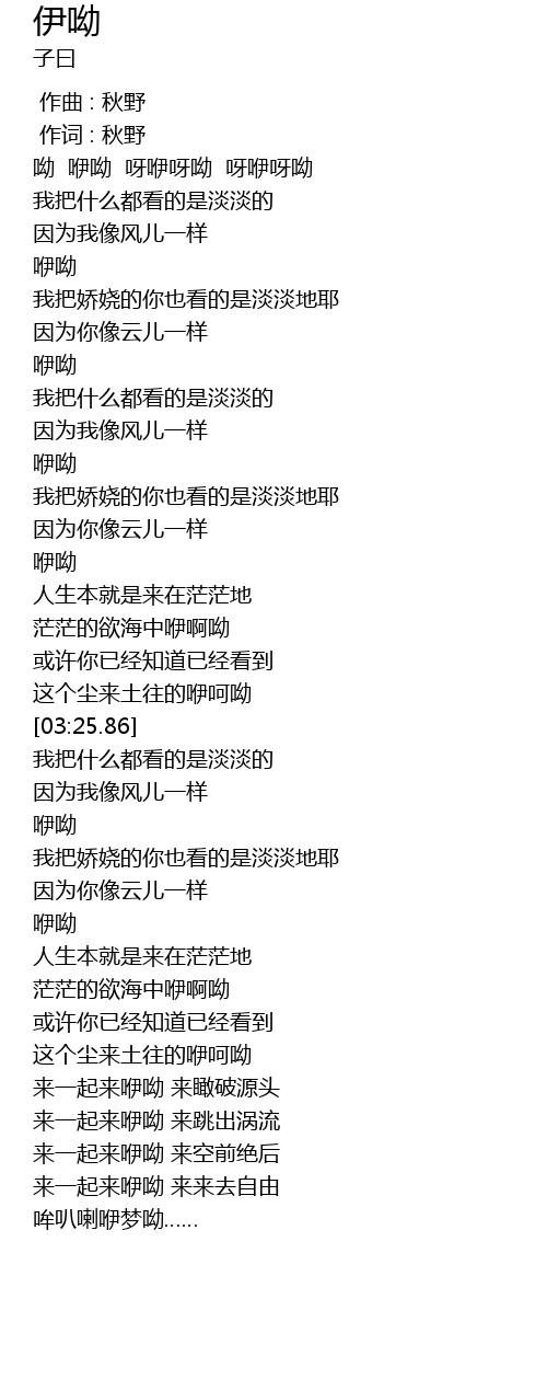 | [01:52.25] | 咿呦 |