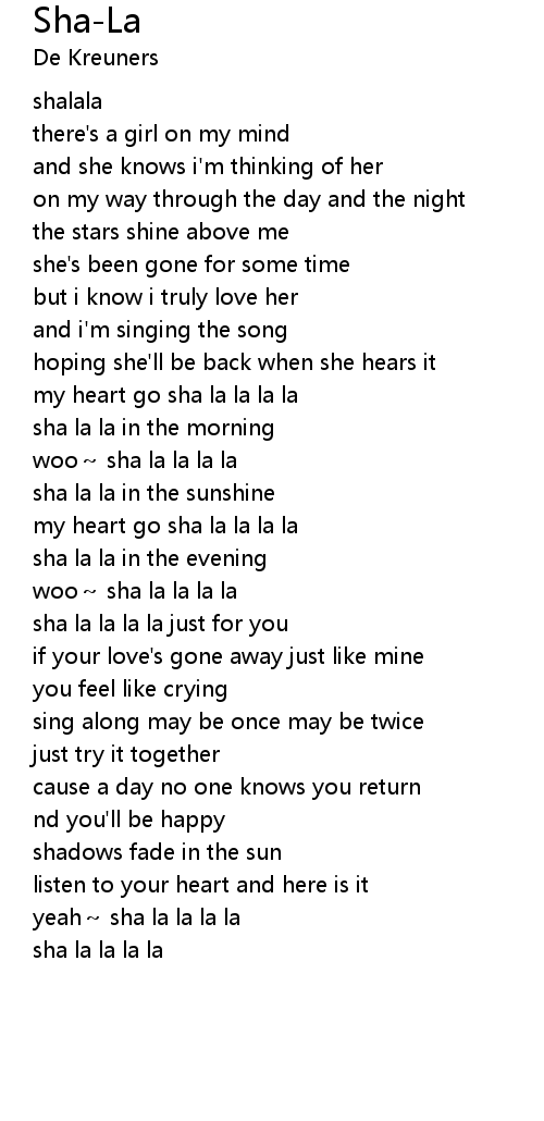 | [00:47.58] | my heart go sha la la la la |