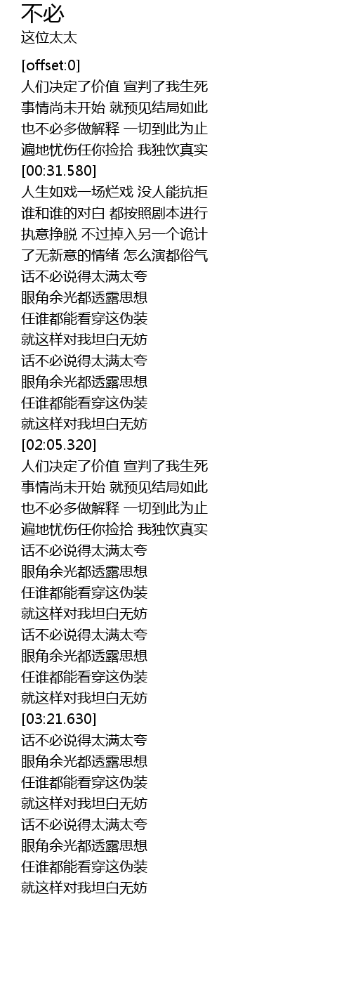 | [01:32.950] | 话不必说得太满太夸 |