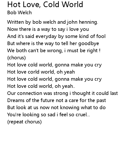 Hot love cold world, oh yeah.. |