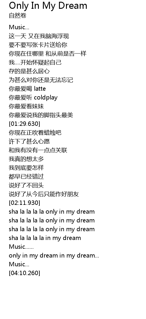 | [02:28.810] | sha la la la la only in my dream |