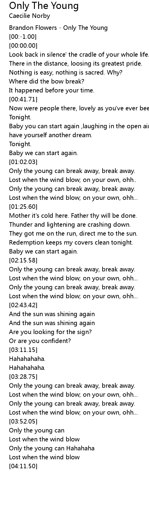Only the young can break away, break away. |