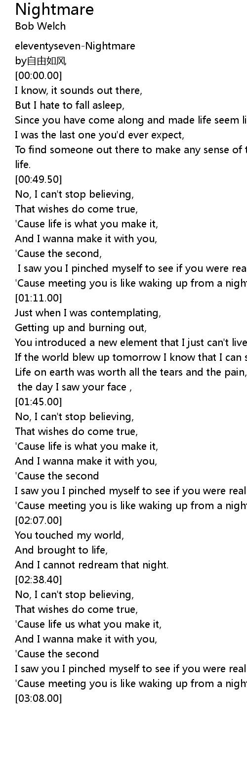 | [03:01.50] | ' Cause meeting you is like waking up from a nightmare |