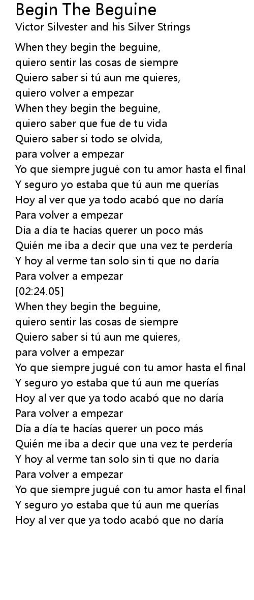 | [02:37.24] | When they begin the beguine, |