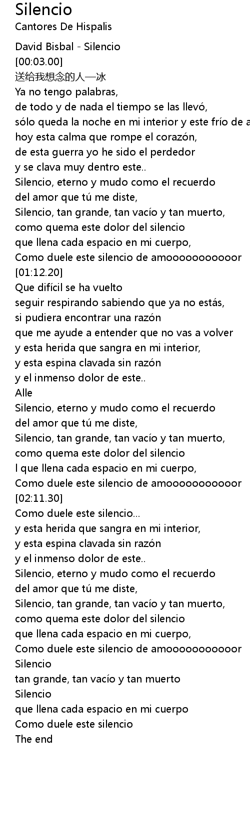 | [00:00.60] | David Bisbal - Silencio |