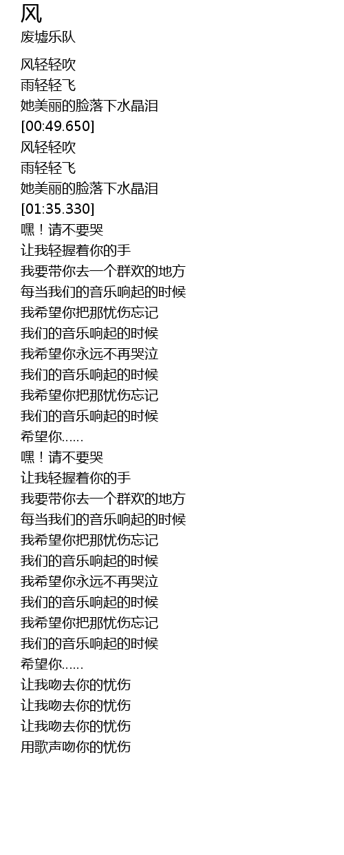 | [03:51.000] | 用歌声吻你的忧伤 |