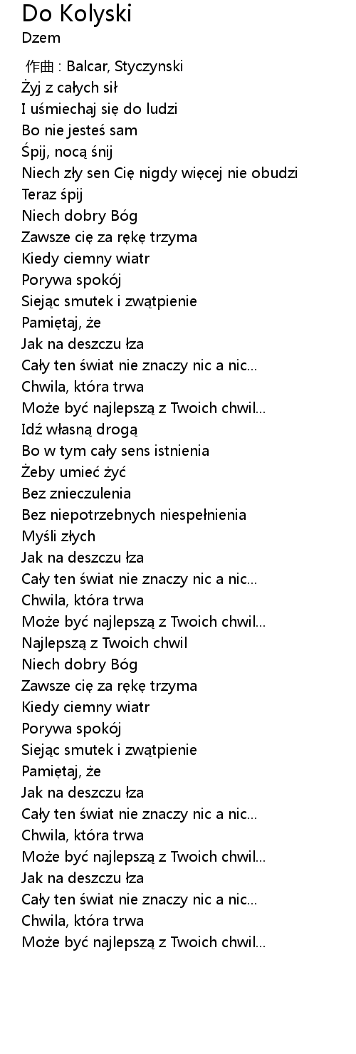 | 歌曲 | Do Kolyski |