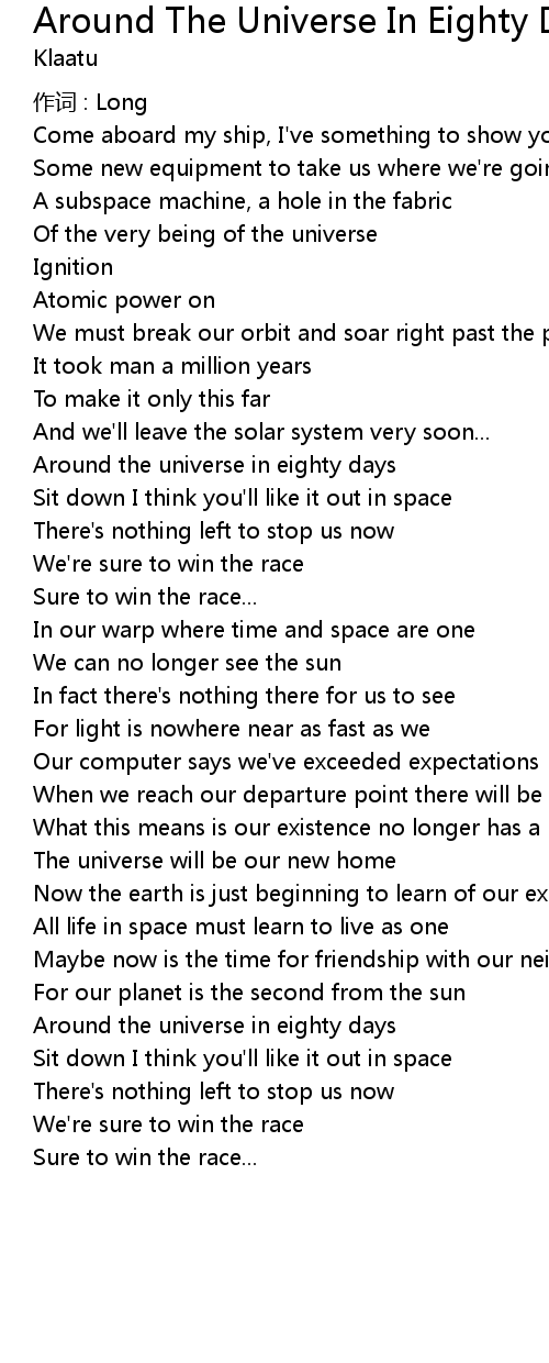 | 歌曲 | Around The Universe In Eighty Days |