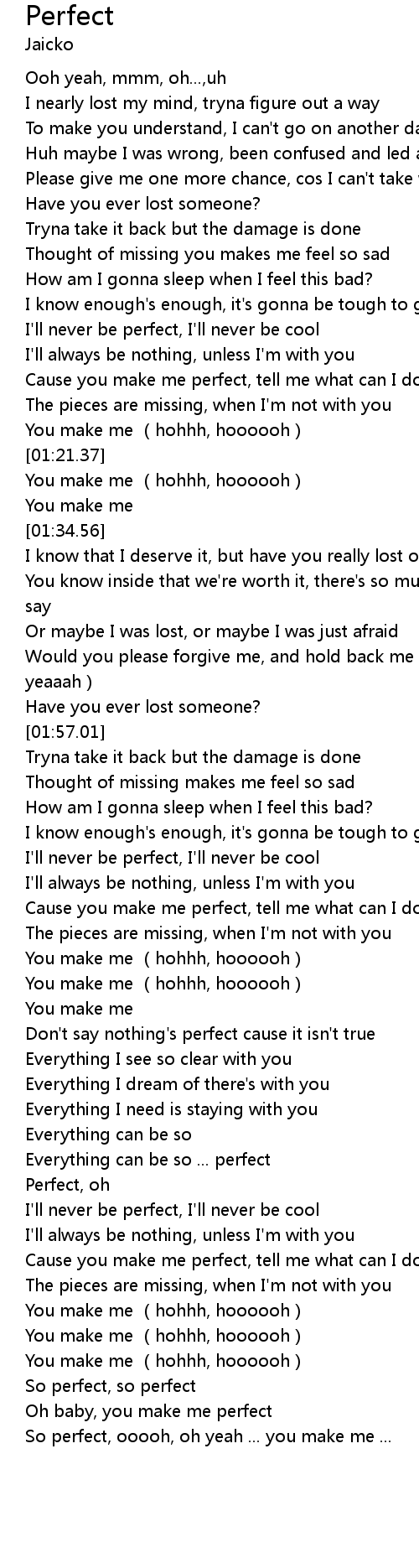 | [02:50.35] | Don't say nothing's perfect cause it isn't true |