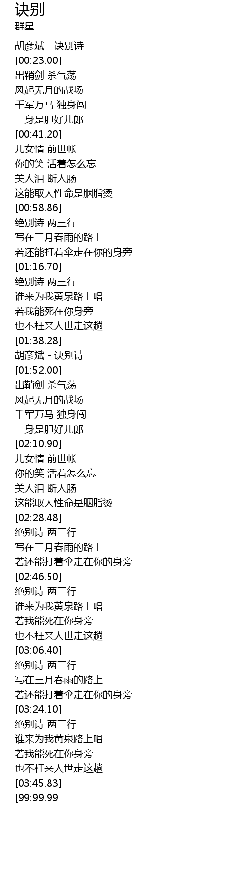 | [01:46.00] | 胡彦斌 - 诀别诗 |