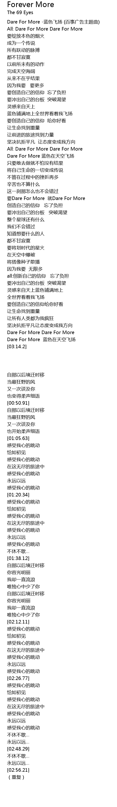 | [02:01.6] | 要Dare For More 就Dare For More |