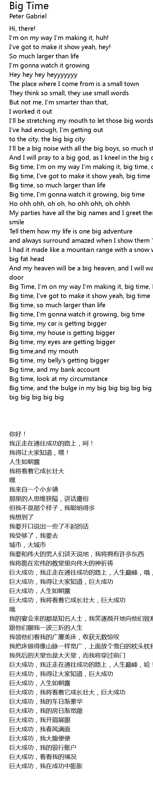 Big time, I'm on my way I'm making it, big time, oh yes |