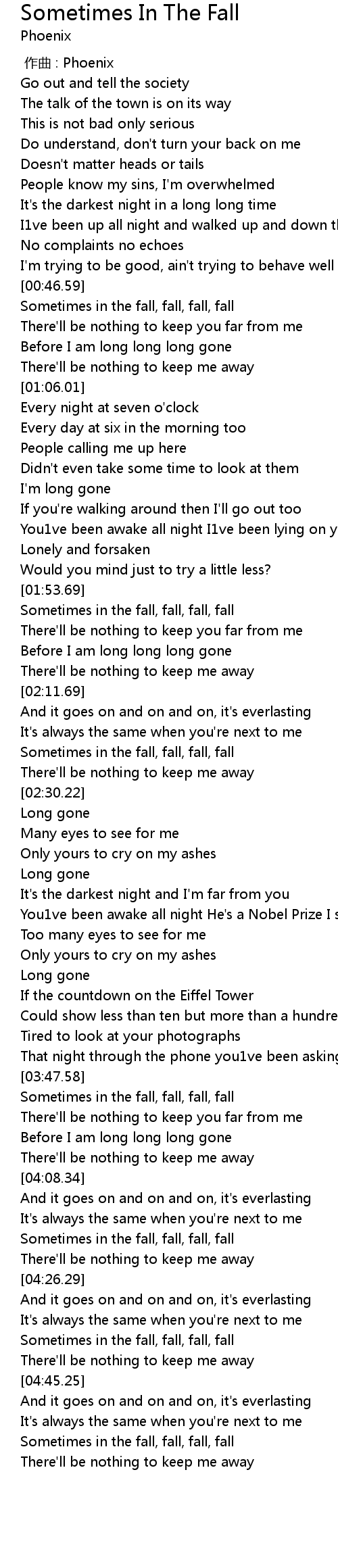 | [00:48.06] | Sometimes in the fall, fall, fall, fall |